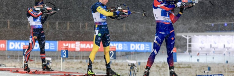 Vebjoern Soerum (NOR), Martin Ponsiluoma (SWE), Emilien Jacquelin (FRA), (l-r) © Manzoni/NordicFocus