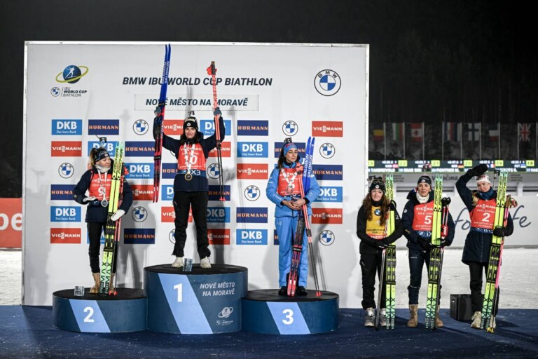 Bildergalerie Biathlon IBU Weltcup Nove Mesto (CZE) Massenstart Frauen Oceane Michelon (FRA), Julia Simon (FRA), Lisa Vittozzi (ITA), Lou Jeanmonnot (FRA), Camille Bened (FRA), Suvi Minkkinen (FIN), (l-r) © Authamayou/NordicFocus 1 2 3 4 5 6 7 8 9 10 11 12 13 14 15 16 17 18 19 20 21 22 23 24 25 26 27 28 29 30 31 32 33 34 35 36 37 38 39 40 41 © Bilder 1 - 41: Authamayou/NordicFocus;
