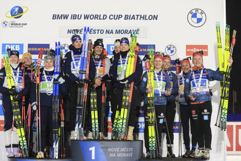 Bildergalerie Biathlon IBU Weltcup Nove Mesto (CZE) Staffel Frauen Maren Kirkeeide (NOR), Ragnhild Femsteinevik (NOR), Ingrid Landmark Tandrevold (NOR), Karoline Offigstad Knotten (NOR), Julia Simon (FRA), Justine Braisaz-Bouchet (FRA), Oceane Michelon (FRA), Lou Jeanmonnot (FRA), Julia Tannheimer (GER), Johanna Puff (GER), Sophia Schneider (GER), Selina Grotian (GER), (l-r) © Manzoni/NordicFocus 1 2 3 4 5 6 7 8 9 10 11 12 13 14 15 16 17 18 19 20 21 22 23 24 25 26 27 28 29 30 31 32 33 34 35 © Bilder 1 - 35: Manzoni/NordicFocus;