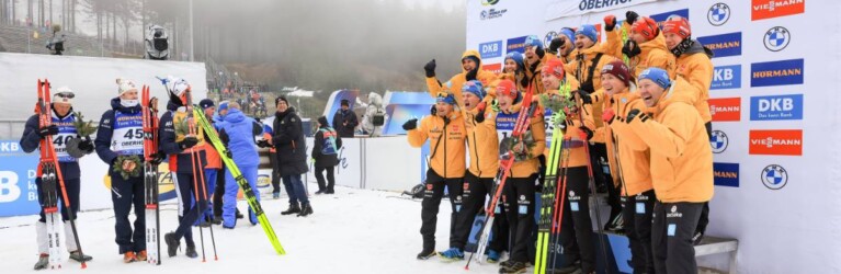Endre Stroemsheim (NOR), Sturla Holm Laegreid (NOR), Johannes Thingnes Boe (NOR), Benedikt Doll (GER), Johannes Kuehn (GER), (l-r) © Manzoni/NordicFocus