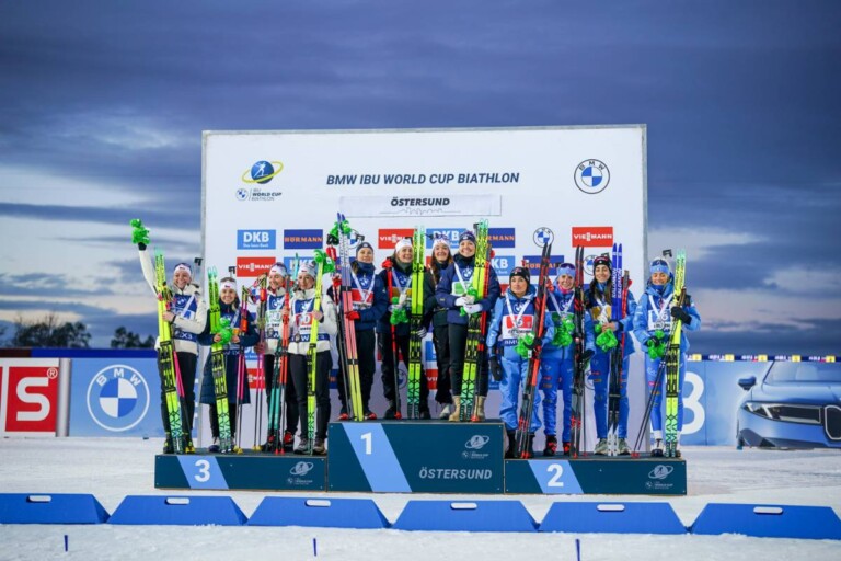 Marketa Davidova (CZE), Tereza Vobornikova (CZE), Lucie Charvatova (CZE), Jessica Jislova (CZE), Jeanne Richard (FRA), Justine Braisaz-Bouchet (FRA), Lou Jeanmonnot (FRA), Oceane Michelon (FRA), Dorothea Wierer (ITA), Michela Carrara (ITA), Lisa Vittozzi (ITA), Hannah Auchentaller (ITA), (l-r) © Nordnes/NordicFocus