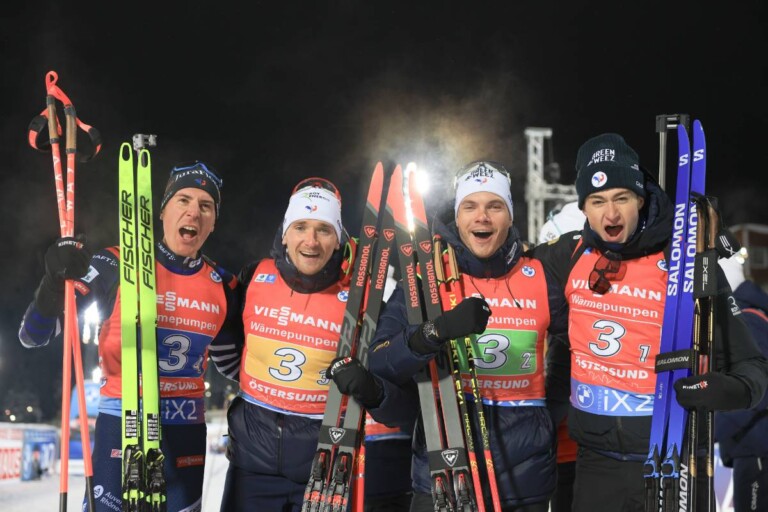 Quentin Fillon Maillet (FRA), Fabien Claude (FRA), Emilien Jacquelin (FRA), Eric Perrot (FRA), (l-r) © Manzoni/NordicFocus