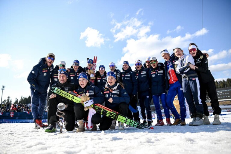 Oceane Michelon (FRA), Camille Bened (FRA), Paula Botet (FRA), Jeanne Richard (FRA), Julia Simon (FRA), Oscar Lombardot (FRA), Justine Braisaz-Bouchet (FRA), Lou Jeanmonnot (FRA), (l-r) © Authamayou/NordicFocus