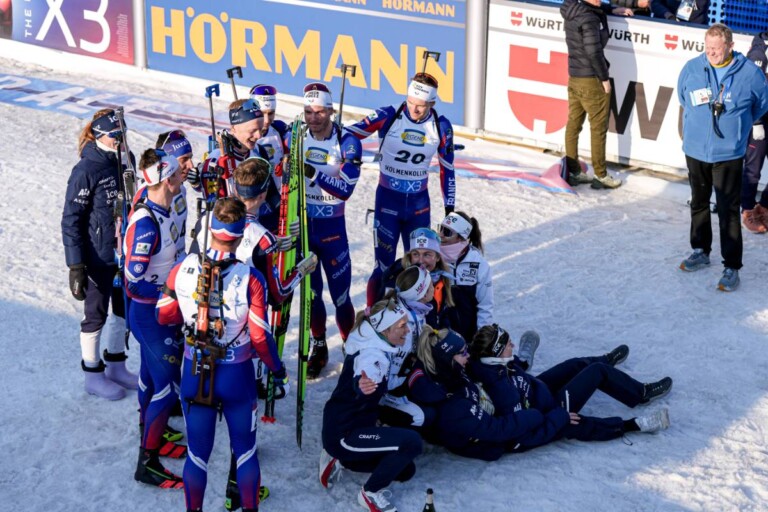 Fabien Claude (FRA), Quentin Fillon Maillet (FRA), Johannes Thingnes Boe (NOR), Antonin Guigonnat (FRA), Martin Uldal (NOR), Eric Perrot (FRA), Emilien Jacquelin (FRA), Emilien Claude (FRA), Ingrid Landmark Tandrevold (NOR), (l-r) © Nordnes/NordicFocus