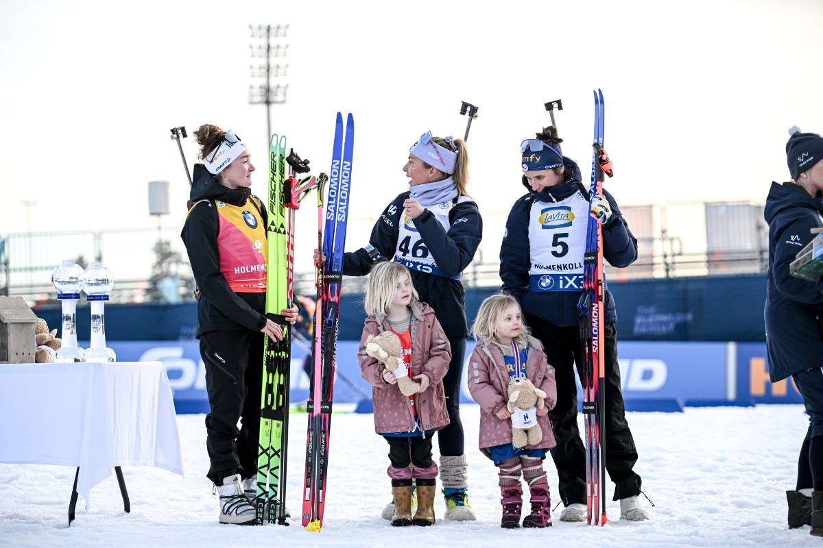Lou Jeanmonnot (FRA), Ingrid Landmark Tandrevold (NOR), Julia Simon (FRA), (l-r) © Authamayou/NordicFocus