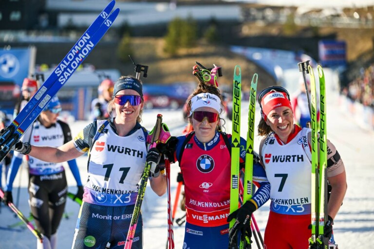 Elvira Oeberg (SWE), Lou Jeanmonnot (FRA), Lena Haecki-Gross (SUI), (l-r) © Authamayou/NordicFocus