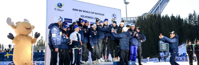 Oceane Michelon (FRA), Justine Braisaz-Bouchet (FRA), Cesar Beauvais (BEL), Julia Simon (FRA), Paula Botet (FRA), Lou Jeanmonnot (FRA), (l-r) - Bildergalerie Biathlon IBU Weltcup Oslo (NOR) Verfolgung Frauen - xc-ski.de Langlauf