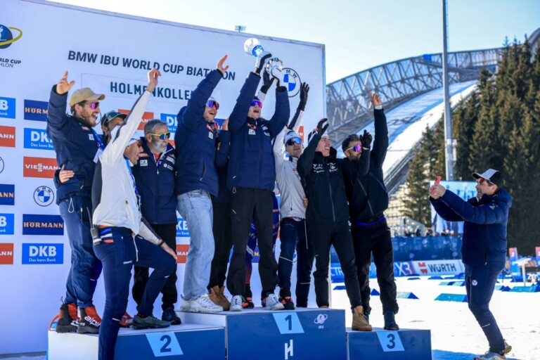 Emilien Jacquelin (FRA), Quentin Fillon Maillet (FRA), Fabien Claude (FRA), Emilien Claude (FRA), Eric Perrot (FRA), (l-r) © Manzoni/NordicFocus