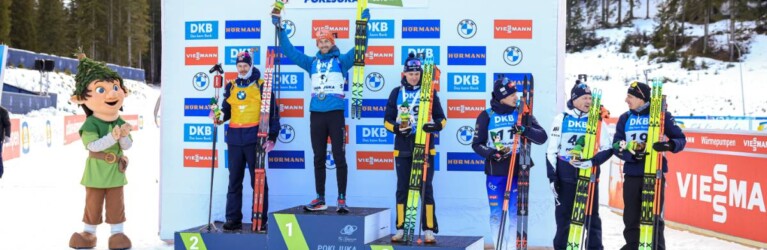 Sturla Holm Laegreid (NOR), Jakov Fak (SLO), Martin Ponsiluoma (SWE), Tommaso Giacomel (ITA), Johannes Dale-Skjevdal (NOR), Quentin Fillon Maillet (FRA), (l-r) © Manzoni/NordicFocus