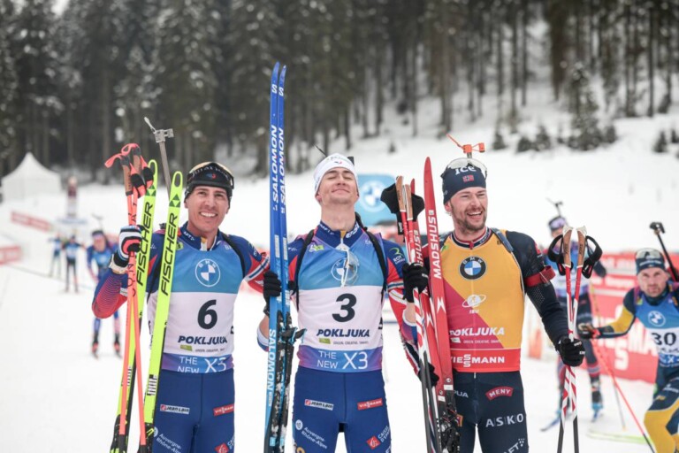 Quentin Fillon Maillet (FRA), Eric Perrot (FRA), Sturla Holm Laegreid (NOR), (l-r) © Yevenco/NordicFocus