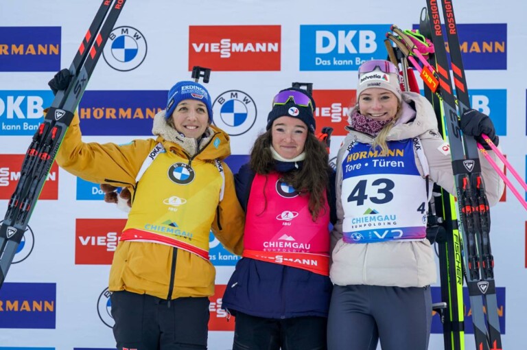 Franziska Preuss (GER), Lou Jeanmonnot (FRA), Amy Baserga (SUI), (l-r) © Thibaut/NordicFocus