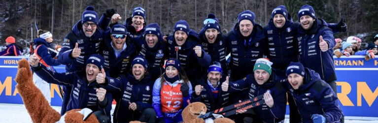 Fabio Cianciana (ITA); coach Team Italy, Andrea Zattoni (ITA); coach Team Italy, Jonne Kahkonen (FIN); coach Team Italy, Mirco Romanin (ITA); coach Team Italy, Dorothea Wierer (ITA), (l-r) © Manzoni/NordicFocus