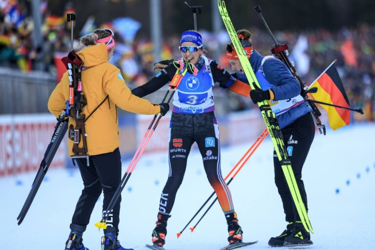 Stefanie Scherer (GER), Franziska Preuss (GER), Sophia Schneider (GER), (l-r) © Manzoni/NordicFocus