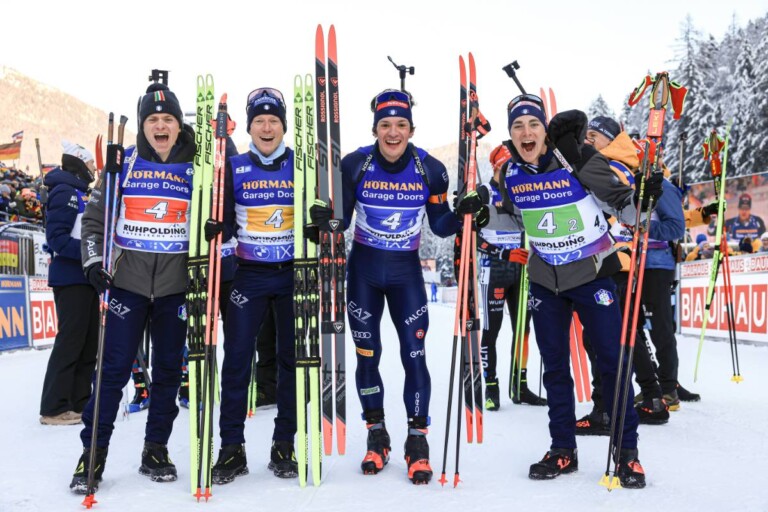 Elia Zeni (ITA), Lukas Hofer (ITA), Tommaso Giacomel (ITA), Didier Bionaz (ITA), (l-r) © Manzoni/NordicFocus
