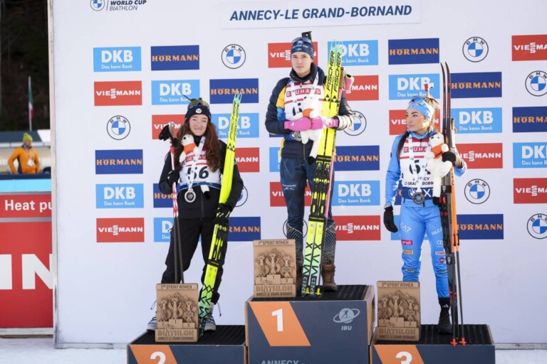 Lou Jeanmonnot (FRA), Hanna Oeberg (SWE), Dorothea Wierer (ITA), (l-r) © Thibaut/NordicFocus