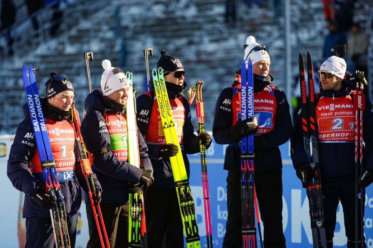 Bildergalerie Biathlon Weltcup Oberhof (GER) Staffel Herren Isak Leknes Frey (NOR), Johannes Dale-Skjevdal (NOR), Martin Uldal (NOR), Vetle Sjaastad Christiansen (NOR), Fabien Claude (FRA), (l-r) © Thibaut/NordicFocus 1 2 3 4 5 6 7 8 9 10 11 12 13 14 15 16 17 18 19 © Bilder 1 - 5, 14 - 15: Thibaut/NordicFocus; Bilder 6 - 13, 16 - 19: Authamayou/NordicFocus;