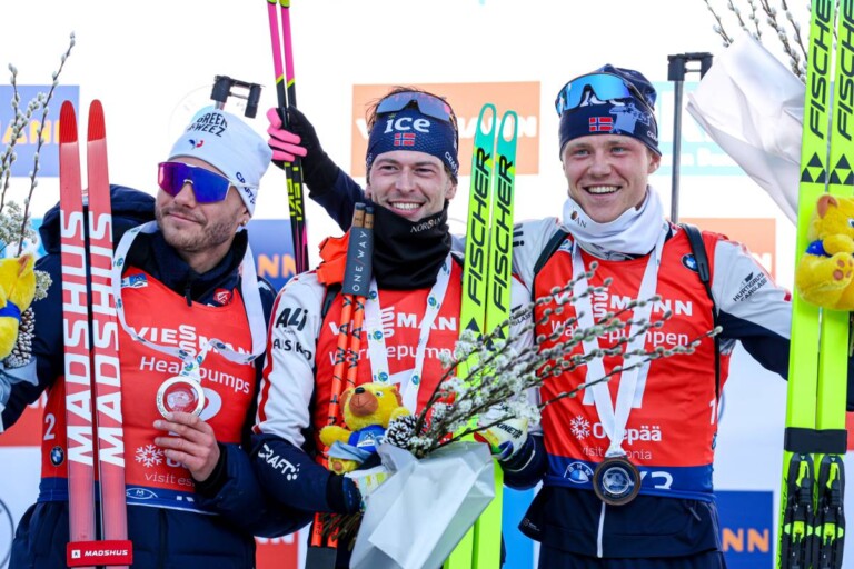 Emilien Jacquelin (FRA), Sturla Holm Laegreid (NOR), Martin Uldal (NOR), (l-r) © Manzoni/NordicFocus