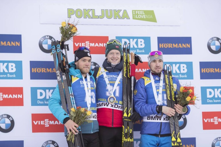 Bildergalerie Biathlon Weltcup Pokljuka (SLO) Sprint Herren Antonin Guigonnat (FRA), Johannes Thingnes Boe (NOR), Alexander Loginov (RUS), (l-r) © Manzoni/NordicFocus 1 2 3 4 5 6 7 8 9 10 11 12 13 14 © Bilder 1 - 14: Manzoni/NordicFocus;