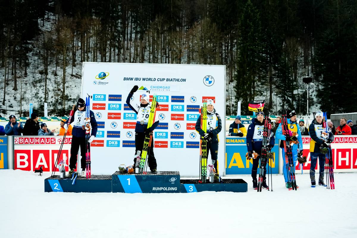 Eric Perrot (FRA ), Johannes Dale-Skjevdal (NOR), Martin Ponsiluoma (SWE), Fabien Claude (FRA), Tommaso Giacomel (ITA), Sebastian Samuelsson (SWE), (l-r) © Vanzetta/NordicFocus