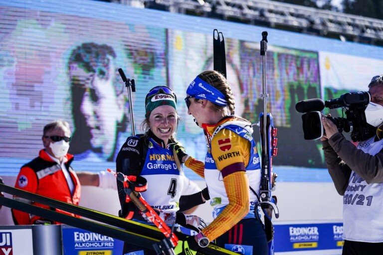 Bildergalerie IBU Biathlon Weltmeisterschaft, Pokljuka (SLO), Massenstart Damen und Herren Lisa Theresa Hauser (AUT), Franziska Preuss (GER), (l-r) © Thibaut/NordicFocus 1 2 3 4 5 6 7 8 9 10 11 12 13 14 15 16 17 18 19 20 21 22 23 24 25 26 27 28 29 30 31 32 33 34 35 36 37 38 39 40 41 42 43 44 45 46 47 48 49 50 51 52 53 54 55 56 57 58 59 © Bilder 1 - 2, 7, 9 - 13, 18 - 24, 30, 32 - 59: Thibaut/NordicFocus; Bilder 3 - 6, 8, 14 - 17, 25 - 29, 31: Manzoni/NordicFocus;