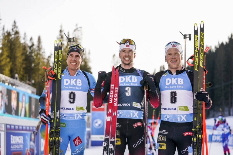 Bildergalerie IBU Biathlon Weltmeisterschaft, Pokljuka (SLO), Massenstart Damen und Herren Quentin Fillon Maillet (FRA), Sturla Holm Laegreid (NOR), Johannes Dale (NOR), (l-r) © Thibaut/NordicFocus 1 2 3 4 5 6 7 8 9 10 11 12 13 14 15 16 17 18 19 20 21 22 23 24 25 26 27 28 29 30 31 32 33 34 35 36 37 38 39 40 41 42 43 44 45 46 47 48 49 50 51 52 53 54 55 56 57 58 59 © Bilder 1 - 2, 7, 9 - 13, 18 - 24, 30, 32 - 59: Thibaut/NordicFocus; Bilder 3 - 6, 8, 14 - 17, 25 - 29, 31: Manzoni/NordicFocus;