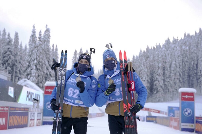 Simon Desthieux (FRA), Emilien Jacquelin (FRA), (l-r) - Bildergalerie IBU Biathlon Weltmeisterschaft, Pokljuka (SLO), Sprint Herren - xc-ski.de Langlauf