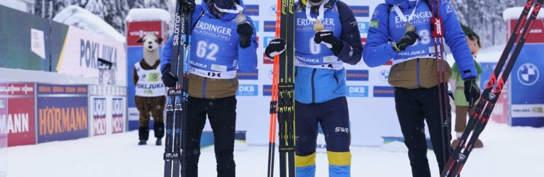 Simon Desthieux (FRA), Martin Ponsiluoma (SWE), Emilien Jacquelin (FRA), (l-r) © Thibaut/NordicFocus