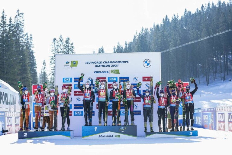 Vanessa Hinz (GER), Janina Hettich (GER), Denise Herrmann (GER), Franziska Preuss (GER), Ingrid Landmark Tandrevold (NOR), Tiril Eckhoff (NOR), Ida Lien (NOR), Marte Olsbu Roeiseland (NOR), Anastasiya Merkushyna (UKR), Yuliia Dzhima (UKR), Darya Blashko (UKR), Olena Pidhrushna (UKR), (l-r) © Thibaut/NordicFocus
