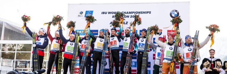 Bildergalerie IBU World Championships Biathlon, Antholz (ITA), Staffel Herren Johannes Thingnes Boe (NOR), Tarjei Boe (NOR), Johannes Dale (NOR), Vetle Sjaastad Christiansen (NOR), Quentin Fillon Maillet (FRA), Simon Desthieux (FRA), Martin Fourcade (FRA), Emilien Jacquelin (FRA), Benedikt Doll (GER), Arnd Peiffer (GER), Philipp Horn (GER), Erik Lesser (GER), (l-r) © Modica/NordicFocus 1 2 3 4 5 6 7 8 9 10 11 12 13 14 15 16 17 18 19 20 21 22 23 © Bilder 1, 15 - 23: Modica/NordicFocus; Bilder 2 - 14: Manzoni/NordicFocus;