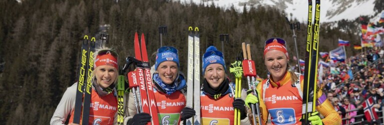 22.02.2020, Antholz, Italy (ITA): Karolin Horchler (GER), Vanessa Hinz (GER), Franziska Preuss (GER), Denise Herrmann (GER), (l-r) © Manzoni/NordicFocus