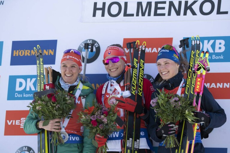 23.03.2019, Oslo, Norway (NOR): Denise Herrmann (GER), Anastasiya Kuzmina (SVK), Hanna Oeberg (SWE), (l-r) © Manzoni/NordicFocus