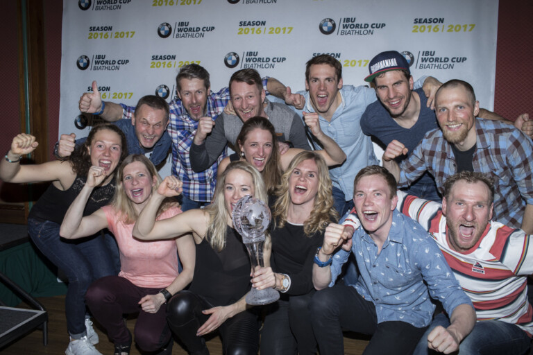 Laura Dahlmeier (GER), Hanna Oeberg of Sweden, Mark Kirchner (GER) coach Team Germany, Franziska Hildebrand (GER), Maren Hammerschmidt (GER), Vanessa Hinz (GER), Simon Schempp (GER), Nadine Horchler (GER), Benedikt Doll (GER), Arnd Peiffer (GER), Eric Lesser (GER), Andi Stitzl (GER) coach Team Germany, (l-r) - IBU world cup biathlon, cups, Oslo (NOR). www.nordicfocus.com. © Manzoni/NordicFocus. Every downloaded picture is fee-liable. © Manzoni/NordicFocus