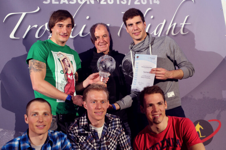 23.03.2014, Oslo, Norway (NOR): Christoph Stephan (GER), FritzFischer (GER) coach Team Germany, Arnd Peiffer (GER), Eric Lesser (GER), Daniel Boehm (GER), Simon Schempp (GER)