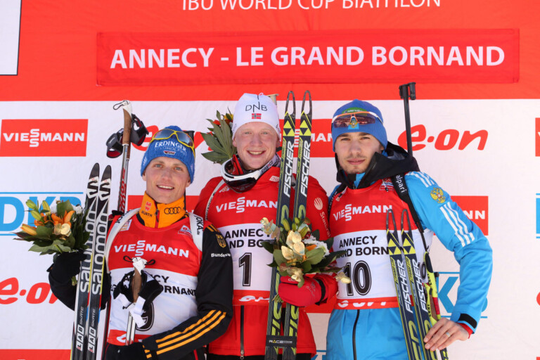 15.12.2013, Annecy-Le Grand Bornand, France (FRA): Eric Lesser (GER), Johannes Thingnes Boe (NOR), Anton Shipulin (RUS)
