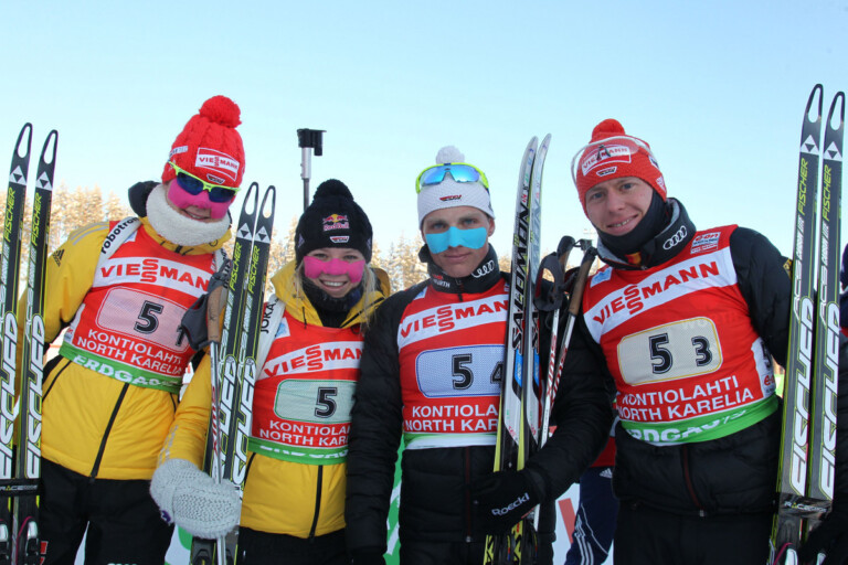 L-R: Tina Bachmann (GER), Fischer, Rottefella, Swix, adidas , Miriam Goessner (GER), Fischer, Salomon, Swix, adidas, Eric Lesser (GER), Daniel Boehm (GER), Fischer, Rottefella, Alpina, OneWay, Rudy Project, adidas - IBU world cup biathlon, relay mixed, Kontiolahti (FIN). www.nordicfocus.com. © Manzoni/NordicFocus. Every downloaded picture is fee-liable. © NordicFocus