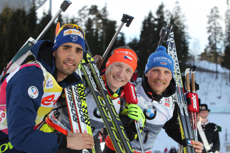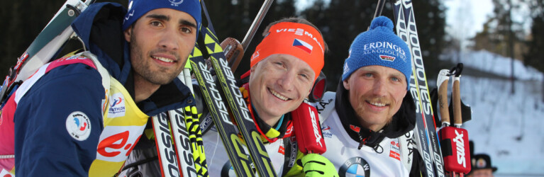L-R: Martin Fourcade (FRA), Rossignol, Rottefella, OneWay, Toko, Ondrej Moravec (CZE), Fischer, Rottefella, Alpina, Swix, Eric Lesser (GER), Salomon, Swix, adidas - IBU world cup biathlon Holmenkollen, mass men, Oslo (NOR). www.nordicfocus.com. © Manzoni/NordicFocus. Every downloaded picture is fee-liable. © Manzoni/NordicFocus