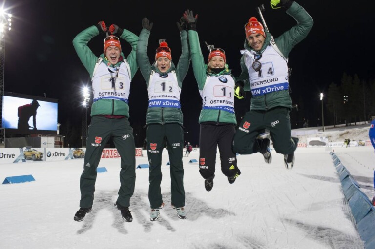 Benedikt Doll (GER), Maren Hammerschmidt (GER), Franziska Preuss (GER), Arnd Peiffer (GER), (l-r) © Manzoni/NordicFocus