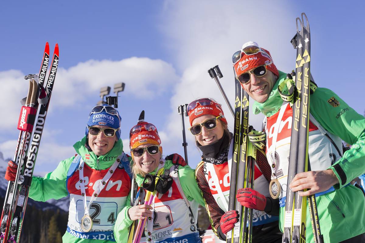 Franziska Hildebrand (GER), Franziska Preuss (GER), Simon Schempp (GER), Arnd Peiffer (GER), (l-r) © Manzoni/NordicFocus