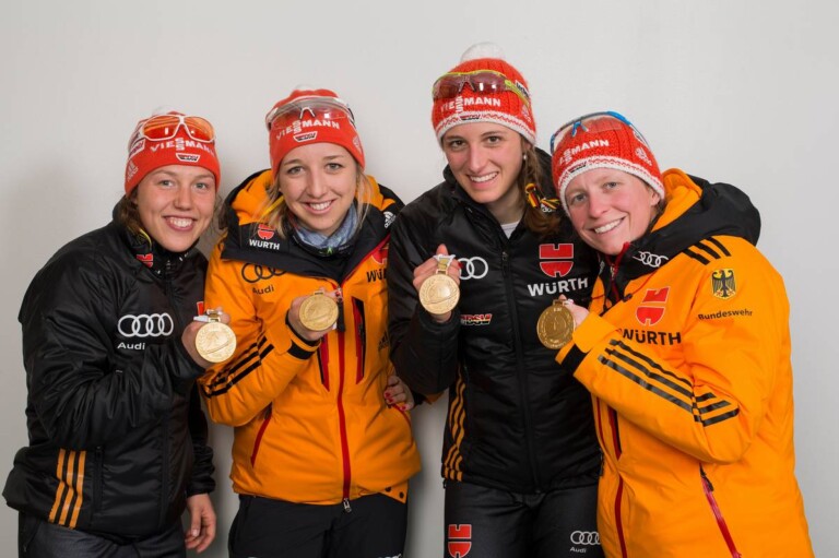 Laura Dahlmeier (GER), Franziska Preuss (GER), Vanessa Hinz (GER), Franziska Hildebrand (GER), (l-r) © NordicFocus