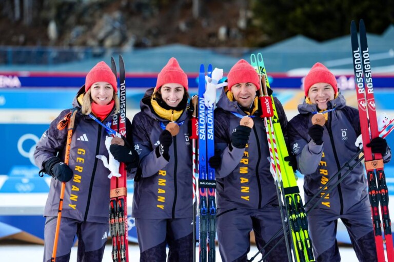 08.02.2026, Antholz, Italy (ITA): Franziska Preuss (GER), Vanessa Voigt (GER), Philipp Nawrath (GER), Justus Strelow (GER), (l-r) © Thibaut/NordicFocus