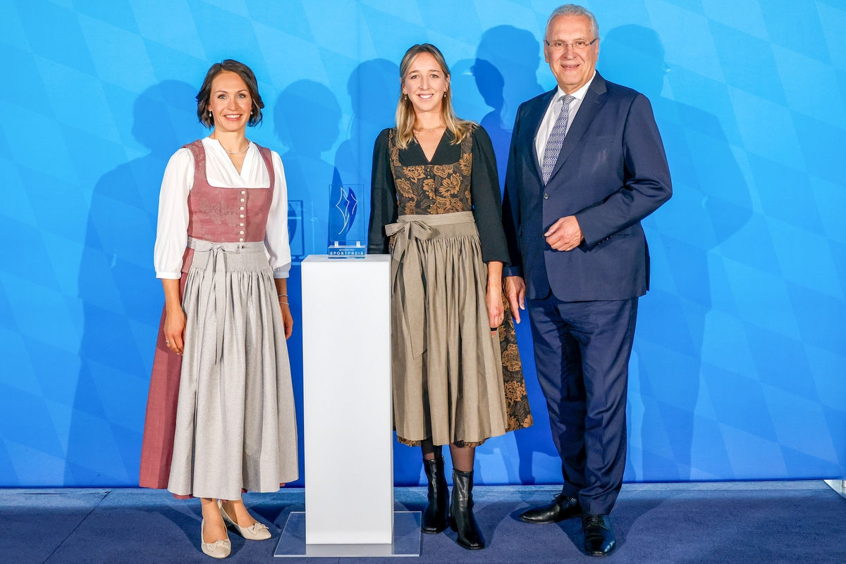 Magdalena Neuner, Franziska Preuss, Bayerischer Sportminister Joachim Herrmann © BayStMI
