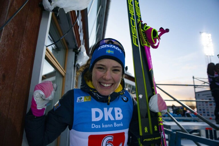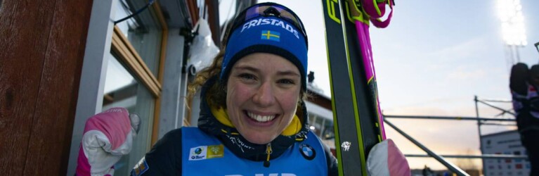 Hanna Oeberg (SWE) freut sich über den Sieg in der Single-Mixed-Staffel mit Sebastian Samuelsson © Manzoni/NordicFocus