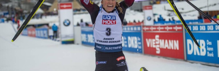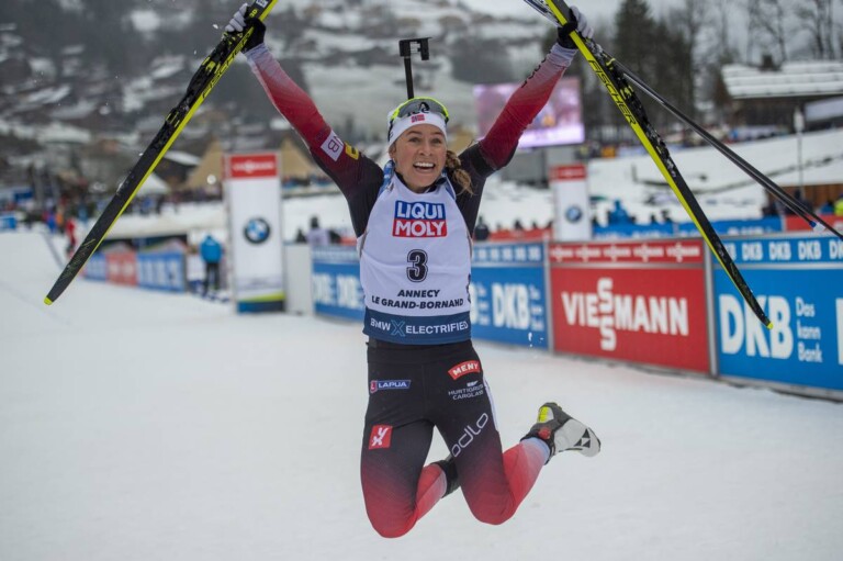Tiril Eckhoff (NOR) gewinnt nach Sprint und Verfolgung auch den Massenstart in Annecy Le Grand-Bornand. Drei Bewerbe - drei Siege! © Thibaut/NordicFocus