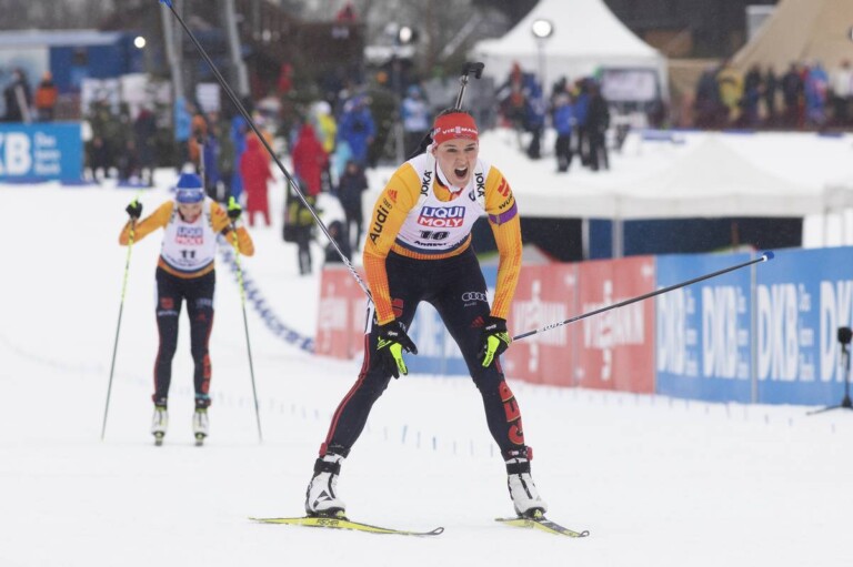 Denise Herrmann (GER) wird Fünfte im Massenstart. Franziska Preuß wurde Achte und die ebenfalls qualifizierte Janina Hettich musste erkrankt passen. © Manzoni/NordicFocus