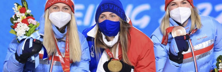 Tiril Eckhoff (NOR), Justine Braisaz-Bouchet (FRA), Marte Olsbu Roeiseland (NOR), (l-r) - XXIV. Olympic Winter Games Beijing 2022, Biathlon, medals, Beijing (CHN). www.nordicfocus.com. © Manzoni/NordicFocus. Every downloaded picture is fee-liable. © Manzoni/NordicFocus
