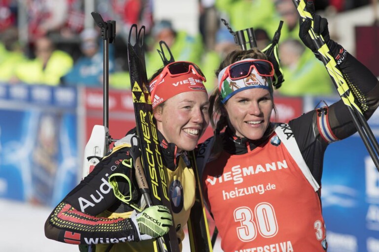 Laura Dahlmeier (GER), Nadine Horchler (GER), (l-r) - IBU world cup biathlon, mass women, Antholz (ITA). © Manzoni/NordicFocus