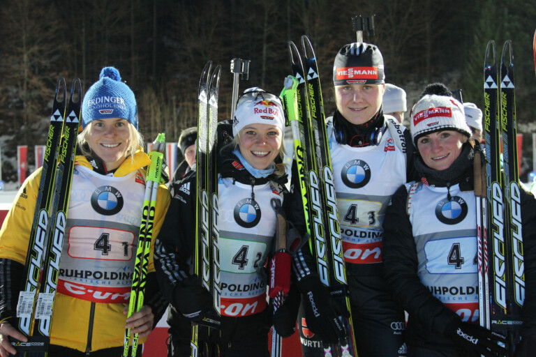 L-R: Nadine Horchler (GER), Miriam Goessner (GER), Tina Bachmann (GER), Andrea Henkel (GER), - IBU world cup biathlon, relay women, Ruhpolding (GER). © NordicFocus