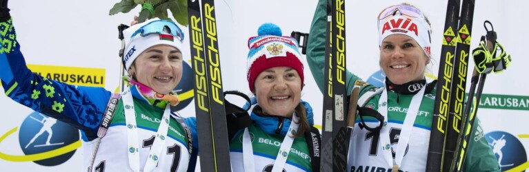 Iryna Kryuko (BLR), Ekaterina Yurlova-Percht (RUS), Nadine Horchler (GER), (l-r) - IBU Open European championships biathlon, medals, Minsk-Raubichi (BLR) © Manzoni/NordicFocus