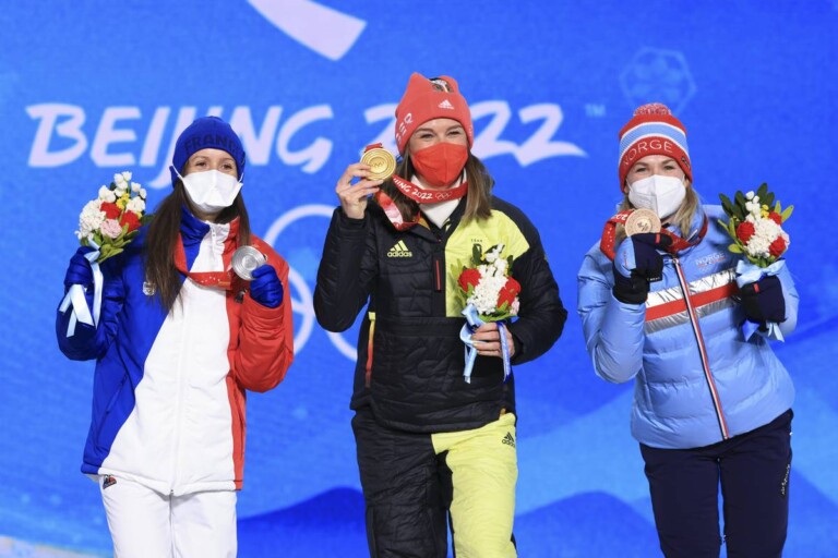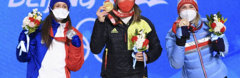 08.02.2022, Beijing, China (CHN): Anais Chevalier-Bouchet (FRA), Denise Herrmann (GER), Marte Olsbu Roeiseland (NOR), (l-r) © Manzoni/NordicFocus
