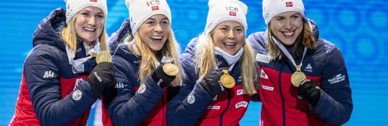 13.02.2020, Antholz, Italy (ITA): Synnoeve Solemdal (NOR), Ingrid Landmark Tandrevold (NOR), Tiril Eckhoff (NOR), Marte Olsbu Roeiseland (NOR), (l-r) © Modica/NordicFocus